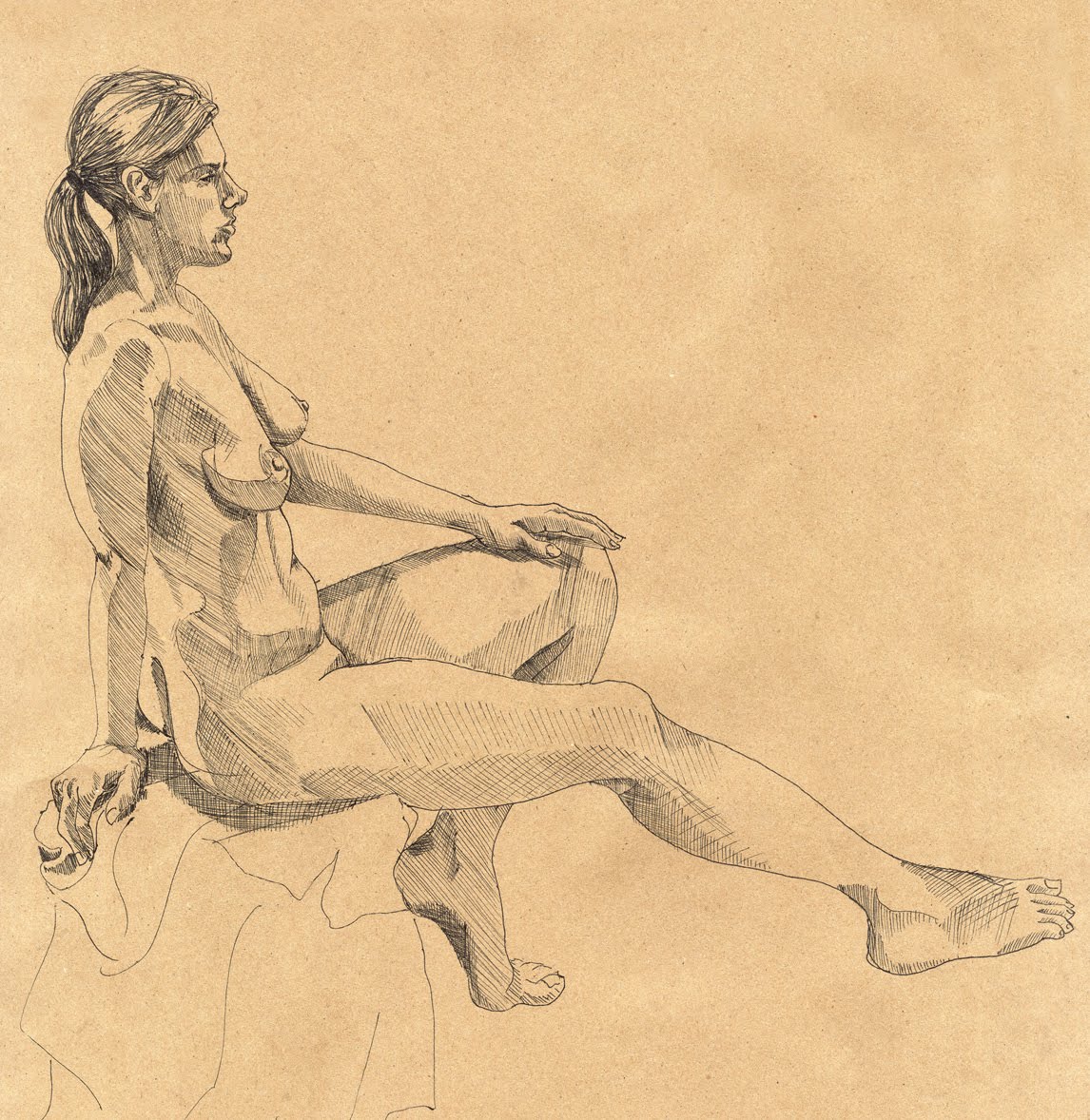 These next few images are some of the first life studies I've done using a Speedball pen and mid-toned ink (a little bit of brushwork on some too). I feel happy with the results. I like how I can see myself trying different techniques within the same medium. I'll definitely keep experimenting with it.